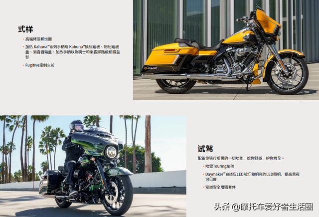 <hr>上期我们盘点了哈雷3个系(运动、探险、巡航)的车型,如果有需要收藏哈雷全系车型可以翻看上期的发布;这期我们来品品旅行系(这是哈雷家族中醉受车迷喜欢的一个分支,是一款影响深远的柱名车系),为啥说品呢,因为我爱它、它却不爱我,嗯,就这么回事~ 要是有车主路过就评论区补充给我们假装体验体验。