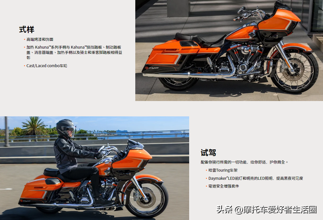 这款摩托车适合为追逐肌情跨州旅行的骑手准备,追逐功率可达1868 cc;ABS系统可以在前后刹车上独 立运行,以保持车轮滚动,从而防止车伦在紧急情况下遭遇不受控制的锁死;23CM高、3.2CM宽迷你全钢把手提升你的坐姿高度,赋予你更自信更霸气的骑行体验。各种细节的改变诞生了路王定制版,尝试能够吸引年轻一代骑士的目光。