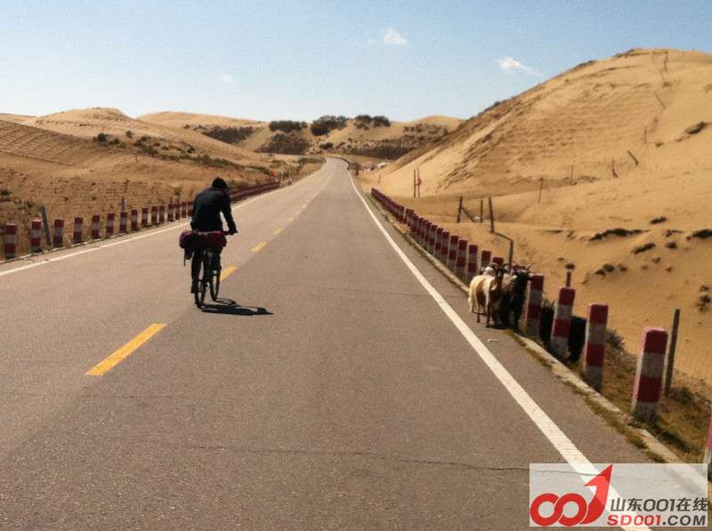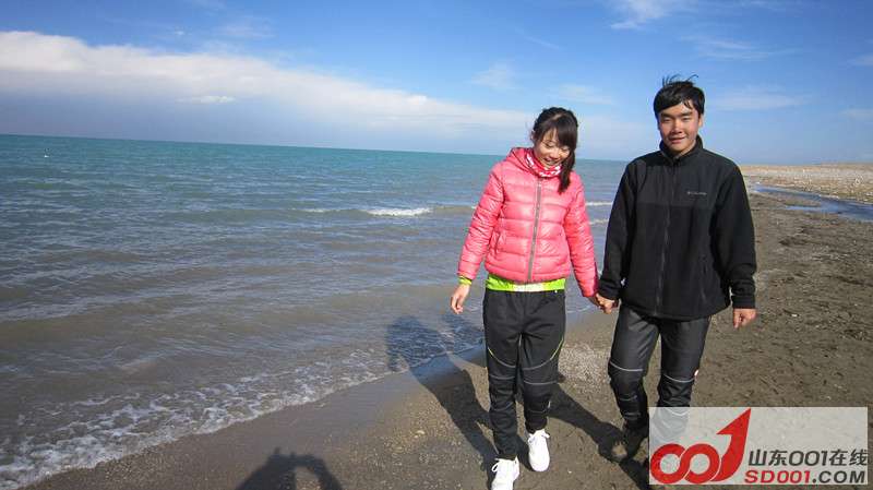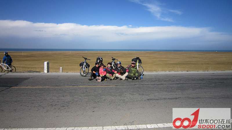 到了晚上,我的高反变得严重。红景天口服液不管用。只能去医院吸氧,其他人都没事,我悲催的人生啊。{:soso_e136:} 环湖第一天,早上起来收拾妥当,迎着朝阳,带着新充的氧气,我们出发了!虽然还有轻微高反,但还可以忍受,后来我一直想如果我不坚持,那该有多遗憾。有些事情现在不做,以后也不会做了。{:soso_e130:} 早上从西海镇出发,骑行环湖东路四五十公里,到达中午吃饭的目的地——湖东种羊场,这一段可以看到沙漠、湖水、草地、雪山在一起的美丽景色。 在海拔稍高的地方骑行不适应,我们的速度大概只有平时在济南骑行速度的一半都不到。很慢,很慢... 永远忘不了第一眼看到青海湖时的心情。经过一片漫长的草原,骑的精疲力尽,青海湖不经意的出现在前方,那就是我朝思梦想的陆海之心,我来看你了,带着我喜欢的人。{:soso_e120:} 很多路边通往湖边的地方都被当地人圈起来收费,但也有例外的。我们在这个立有青海湖石碑的空旷地方玩的不亦乐乎。但是蹦跶完我又开始缺氧,赶紧再吸点氧气。衰。{:soso_e136:} 即便草滩已不葱绿,羊群依然似云. Muscle、姗姗、大裴轮番扎胎,金弟善成了维修队队长。我还是轻微高反,赶紧吸点氧。