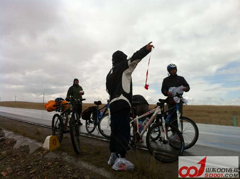 环湖第三天,早上醒来发现下雨夹雪了。很冷。吃早饭的时候听别的骑友说这一路只有46公里外的泉吉可以吃午饭。本来行程最轻松的一天,却因为天气原因变得没那么容易。突如其来的冰雹让天气更冷了,我们艰难的往前赶路,也有好心的自驾车主示意我们要不要搭车。我们的冲锋衣都还算给力,懒得穿雨衣了。骑了一会儿我果断喊停,让大裴把他们公司的方便袋贡献出来,每个人套在鞋上。如果鞋子湿了就不好干了。 一阵冰雹过后是一阵大雾,能见度不足50米,地理没学好,也不知道为啥。 虽然一路走来吃了很多家面片,都实惠而且好吃,但午饭在泉吉那家吃的肉末面片真的特别香。 放晴后的天,被雨雪冰雹洗刷的格外的蓝。{:soso_e176:}心情也变得轻松,不过骑行的速度依旧慢。